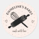 Rouleau à pâtisserie et fouet modernes et accrocheurs, rose et noir, pour les pâtissiers et cuisiniers à domicile. Étiquetez vos cadeaux gourmands avec cet autocollant rose et noir de style fantaisiste.