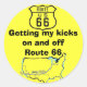 Ces autocollants Route 66 vous permettent de vous amuser et de posséder un morceau d'histoire américaine en même temps. Fabriquée à partir de ma photo d'une véritable enseigne sur la route 66, la route d'environ 2.400 miles de long et parfois appelée "la route mère". " C'était autrefois LA principale artère automobile d'Amérique. Il s'est étendu de la région de Los Angeles à Winslow, en Arizona, Père Noël Fe et Albuquerque, au Nouveau-Mexique, Amarillo, au Texas, puis à Chicago, en Illinois. Certaines de ces villes ont connu un regain de popularité lorsqu'elles ont été mentionnées dans des chansons : "Take It Easy", un tube des années 1970 du groupe de rock The Eagles, une chanson qui avait les paroles de "Standing on a Corner in Winslow, Arizona..." tandis que la star de musique country George Strait chantait sur le fonctionnement du circuit de rodéo dans "Amarillo by Morning". Le slogan au milieu de cet autocollant est une adaptation du célèbre slogan "Faites vos pieds sur la route 66". Comme il n'y a plus grand-chose sur les tronçons de la route 66, cette conception dit "on et OFF Route 66". Le slogan est accompagné d'une carte des États-Unis montrant la route réelle et marquant à la fois Winslow et Amarillo, ainsi que les points de départ et d'arrêt. Oh oui, il y a aussi une flèche près de Los Angeles pointant vers les îles Hawaiiennes avec HNL (le code de l'aéroport pour Honolulu, la capitale de toutes les îles qui composent l'état d'Hawaii.) Si vous n'aimez pas le jaune, vous pouvez customiser cet autocollant avec une couleur que vous préférez. Le jaune apparaît à travers la carte et le marqueur de route parce que j'ai coché la case dans les options de personnaliser pour que les blancs dans le design soient transparents. Jaune symbolise la lumière d'avertissement aux intersections de la circulation en zoomant sur une autre aventure amusante dans la vie.