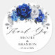 Elégant bleu royal blanc argenté thème mariage merci autocollant avec élégant bouquet de bleu royal, marine, argent, blanc pur de couleur rose bourgeons et sauge vert eucalyptus feuilles. Veuillez me contacter pour toute aide sur la personnalisation ou si vous avez besoin d'un autre produit avec ce design.