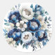 Sticker Rond Royal Blue and Silver Glittery Peony Mariage