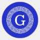 Sticker Rond Royal Blue Wt Grèce clé cadre de ligne initiale Mo