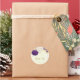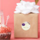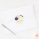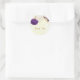 Sticker Rond royal violet & fleurs blanches or merci