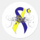Sticker Rond Ruban de sensibilisation bleu et jaune avec papill