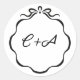Sticker Rond Rubans Encrés et Initiales de Nœud Mariage Mat