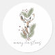 Un autocollant minimaliste de vacances rustiques avec un cerf aquarelle encadré de pinèdes et de baies. Le simple message "Joyeux Noël" dans une écriture manuscrite décontractée apporte une touche moderne et chaleureuse. Ce design d'inspiration boisée est parfait pour sceller des cartes de fin de année, décorer des cadeaux, ou ajouter un accent sur le thème de la nature à votre emballage festif. Idéal pour les styles d'hiver rustique, neutre et douillet.