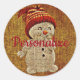 Sticker Rond Russe Snowman sur burlap mignon brun hiver rouge