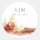 Sticker Rond Rust Orange Jaune Automne Arbres Monogramme Mariag