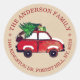 Sticker Rond Rustic Red Car Festive Noël Adresse de retour