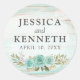 Sticker Rond Rustic Wood Turquoise Floral Noms & Mariage Date