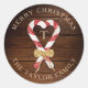 Rustique Ajouter le nom Monogram Joyeux Sticker rond classique de Noël