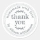 Rustique et moderne fait maison avec amour merci autocollant avec le texte fait maison avec amour, merci et votre nom en noir style typographie manuscrite sur un arrière - plan blanc. Ajoutez simplement votre nom et le texte personnalisé au étiquette de remerciement. Conçu exclusivement pour vous par Happy Dolphin Studio. Si vous avez besoin d'aide ou de produits correspondants, veuillez nous contacter à happydolphinstudio@outlook.com .
