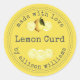 Autocollant rustique, simple et moderne fait maison avec le texte fait avec amour, caillé de citron et votre nom dans la typographie moderne hors-noir sur un arrière - plan jaune illuminé avec une touche élégante d'aquarelle citron et tranche de citron. Ajoutez simplement votre nom d'entreprise et le nom du produit au étiquette. Conçu exclusivement pour vous par Happy Dolphin Studio.