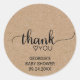Sticker Rond Rustique Faux Kraft Calligraphie Merci Favor