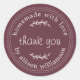 Rustique et moderne fait maison avec amour merci autocollant avec le texte fait maison avec amour, merci et votre nom en blanc élégant script écrit à la main sur un arrière - plan bordeaux avec une touche de feuillage élégant. Ajoutez simplement votre nom et le texte personnalisé au étiquette de remerciement. Conçu exclusivement pour vous par Happy Dolphin Studio. Si vous avez besoin d'aide ou de produits correspondants, veuillez nous contacter à happydolphinstudio@outlook.com .