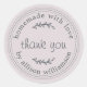 Rustique et moderne fait maison avec amour merci autocollant avec le texte fait maison avec amour, merci et votre nom en noir élégant script écrit à la main sur un arrière - plan pastel violet. Ajoutez simplement votre nom et le texte personnalisé au étiquette de remerciement. Conçu exclusivement pour vous par Happy Dolphin Studio. Si vous avez besoin d'aide ou de produits correspondants, veuillez nous contacter à happydolphinstudio@outlook.com .