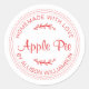 sticker à tarte à la pomme rustique et simple fait maison avec le texte fait maison avec amour, tarte à la pomme et votre nom en rouge écriture chic calligraphie et typographie moderne sur un arrière - plan blanc avec une touche de feuillage élégant. Ajoutez simplement votre nom et le nom du produit au étiquette. Conçu exclusivement pour vous par Happy Dolphin Studio. Si vous avez besoin d'aide ou de produits correspondants, veuillez nous contacter à happydolphinstudio@outlook.com .