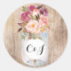 Sticker Rond Rustique Mason Jar Aquarelle Fleurs Mariage de boi