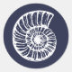 Sticker Rond Rustique Sea Snail Shell Blue Beach Mariage