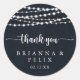 Ce collier rustique lumières à cordes Merci mariage faveur classique collant rond est parfait pour un mariage moderne. Le design présente de belles lumières à cordes peintes à la main dans un arrière - plan bleu foncé. Faites de l'autocollant votre propre étiquette en incluant vos noms, l'événement (s'il y a lieu) et la date. Ces autocollants peuvent compléter une réception de mariage, une douche nuptiale, ou tout événement!