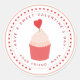Autocollant moderne de la Saint-Valentin pour enfants, sacs cadeaux, pour fête, pour enseignants en rouge et rose avec gâteau cupcake graphique.