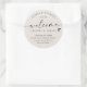 Stickers Sac Hôtel Beige clair : Minuscules et sophistiqués, ces stickers d'écriture moderne et légère sont un complément parfait aux palettes mariages neutres. Le design rond de 3 pouces propose "bienvenue amis & famille" avec un coeur subtil et des noms et des dates personnalisables. Le ton chaud bronzé et le script simple écrit à la main ajoutent une élégance sobre — idéal pour les autocollants de sacs d'hôtel, les étiquettes d'accueil, ou les sceaux cadeaux qui complètent votre esthétique mariage.
