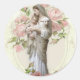 Belle image du Sacré Coeur de Jésus avec des fleurs de pêche dans l'arrière - plan.