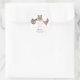Un autocollant de baby shower spécial safari mignon avec illustration dessinée à la main d'une girafe, léopard et zèbre aux fleurs roses, couronne et casquette de fête. Le texte en haut dit "merci d'avoir inondé notre famille d'amour !"
