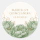 Sticker Rond Sage Green Floral Élégant Quinceanera