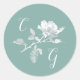 Sticker Rond Sage Green Floral Line Art Monogram Wedding