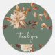 Sage Green Merci Automne Sticker. Scellez vos faveurs avec gratitude et charme à l'aide de cet autocollant de remerciement, orné de fleurs peintes à la main et de feuilles d'automne dans les tons riches de terre cuite, rouille et crème. L'arrière - plan vert sauge doux ajoute de la chaleur, ce qui en fait la touche finale parfaite pour les sacs, boîtes ou enveloppes cadeaux. Montrez votre appréciation dans le style saisonnier - faites-le le vôtre aujourd'hui.