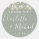 Sage vert mariage faveur merci classique collant rond avec de jolies lumières à cordes et des noms de style signature. Personnalisez avec vos détails de remerciement spéciaux dans la typographie blanche moderne. Conçu par Thisisnotme©