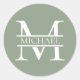 Sticker Rond Sage Vert Elégant Personnalisé Monogramme & Nom