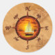 Rose nautique vintage Compass avec peinture numérique d'un voilier et coucher de soleil au centre et carte nautique de style vintage de l'arrière - plan Florida Keys.