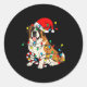 Sticker Rond Saint Bernard Dog Christmas Lights Santa Xmas Pet