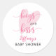 Le baby shower à thème Saint-Valentin mignon privilégie l'autocollant avec des coeurs roses avec un texte qui dit "embrasser et embrasser".