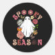 Sticker Rond Saison Éffrayante super mignonne Ghost Holding Cit