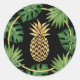 Sticker Rond Salon de Spa aux Feuilles Tropicales Ananas Or Mod
