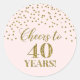 Sticker Rond Salutations à 40 ans Anniversaire Pink Gold Confet