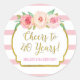 Soirée d'anniversaire de 40 ans préférez les autocollants avec des fleurs d'aquarelle rose pâle et des rayures rose et blanc avec du texte or.