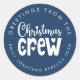 Sticker Rond Salutations des noms d'équipage de Noël Bleu blanc