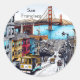 Art Ai représentant une vue pittoresque de San Francisco, pont de Californie, eau et bâtiments. Les souvenirs de San Francisco marchent.