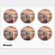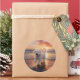 Sticker Rond Sandy Paws Bichon Frise Dog sur Beach Sunset