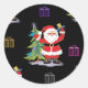 Une jolie image de Noël avec un motif de joyeux Santas, avec des cadeaux et cadeaux de Noël colorés ainsi que des arbres de Noël décorés.