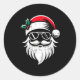 Sticker Rond Santa Claus Face Sungles With Hat Beard Christmas