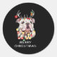 Sticker Rond Santa Reindeer English Bulldog Dog Christmas Light
