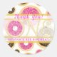 Sticker Rond Saupoudrer rose beignets Un 1er anniversaire fête