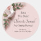 Sticker Rond Save The Date - Pink Roses & Doves Wedding