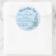 Design rond avec un arrière - plan bleu cornflower pâle avec un spray fleuri en bas à droite. En gros trait de lettrage autour de la moitié supérieure sont les mots Soap artisanal. La zone centrale a plusieurs lignes personnalisées en forme de modèle que nous avons utilisé pour le poids, Type de savon, Ingrédients, et créateur.