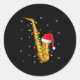 Sticker Rond Saxophone Music Lover Xmas Lights Santa Saxophone