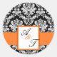 Sticker Rond Sceau Damask Mariage Monogramme orange
